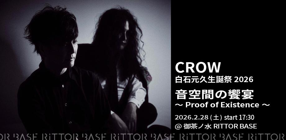CROW|白石元久生誕祭2026 『音空間の饗宴〜Proof of Existence〜 』閏年生まれの白石元久の2026年のバースデーに御茶ノ水RITTOR BASE(https://rittorbase.jp/)にてCROW単独公演開催決定!!一緒に白石さんの誕生日を祝いましょう♪ 〈ACT〉CROW(Dr…