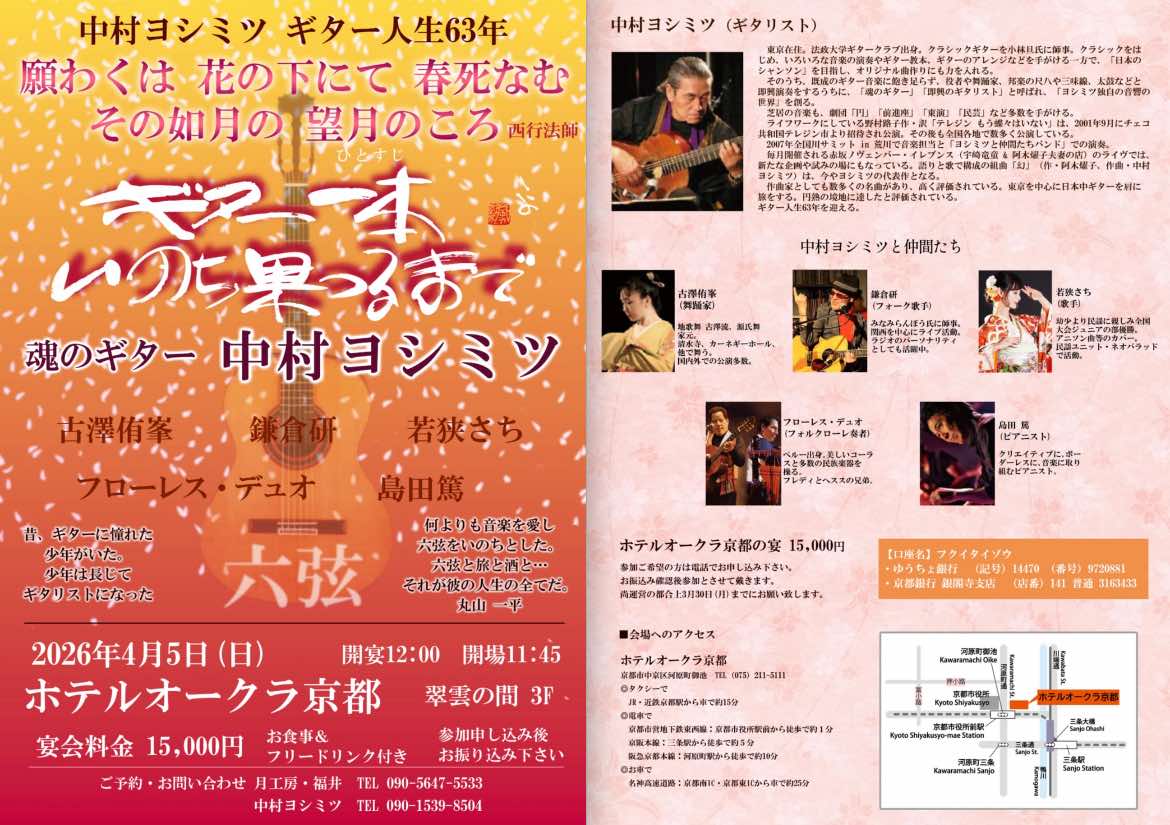 孤高のギタリスト中村ヨシミツ氏のギター人生63年を祝し、本年も開催。若狭さちゲスト出演。